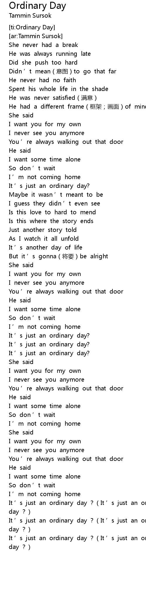 | [03:19.661] | It ' s just an ordinary day ? It ' s just an ordinary day ? |