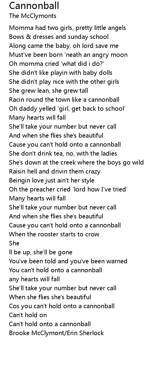 Cause you can't hold onto a cannonball |