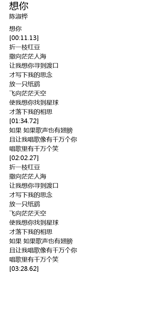 | [00:02.30] | 想你 |