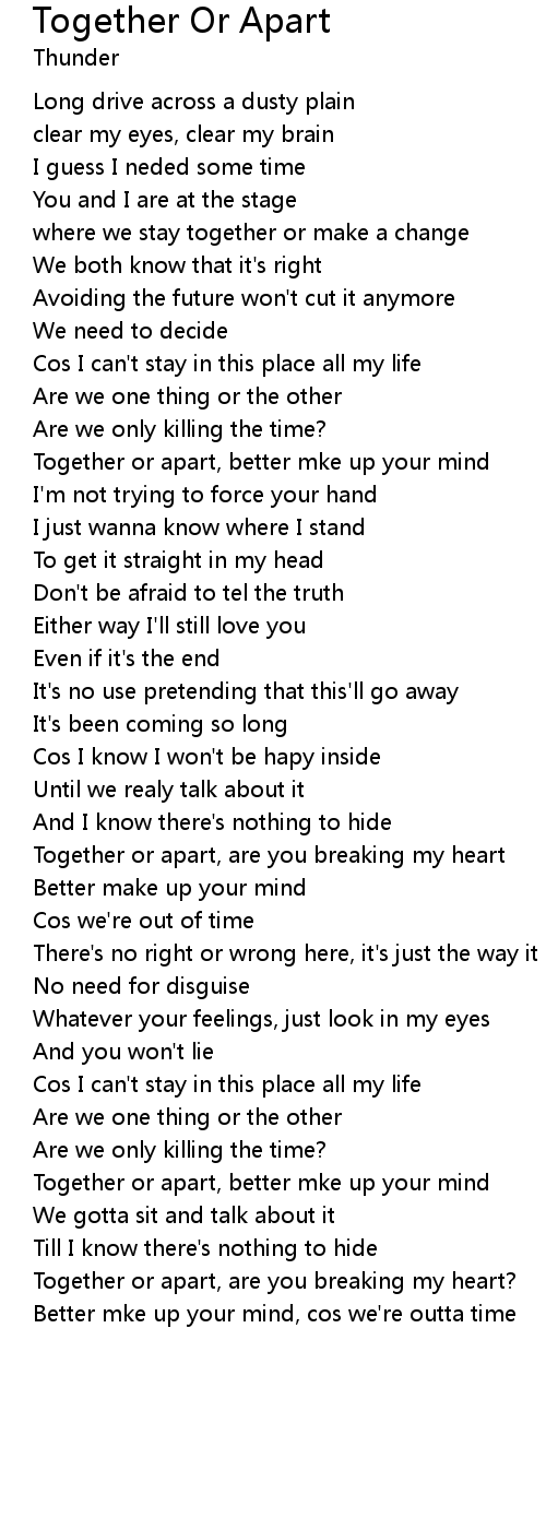 Together or apart, better mke up your mind |