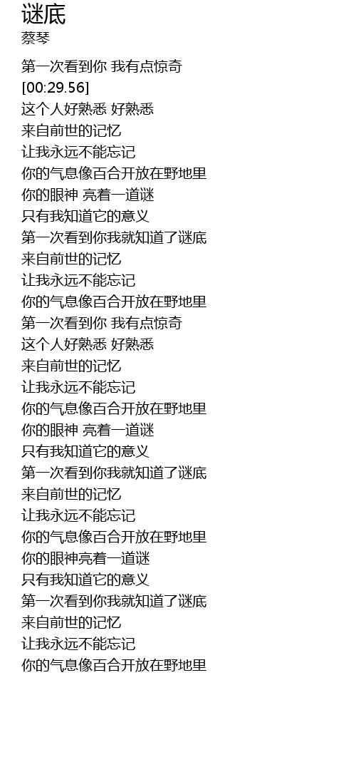 | [02:59.78] | 你的眼神亮着一道谜 |