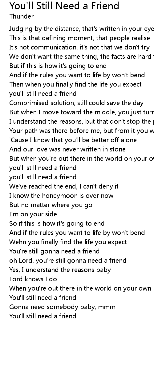 You're still gonna need a friend |