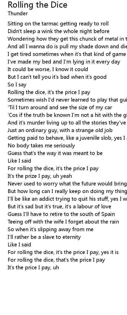 For rolling the dice, it's the price I pay, yes it is |