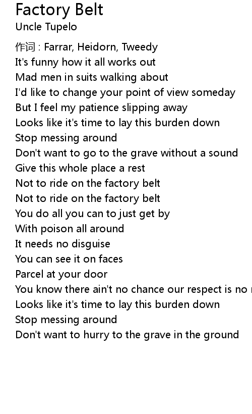 | 作词 : Farrar, Heidorn, Tweedy | |