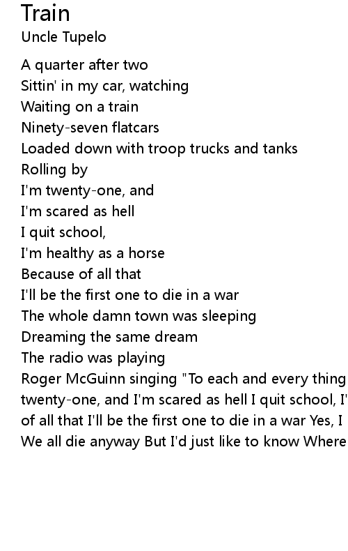 Roger McGuinn singing "To each and every thing there's a time and a season I'm twenty-one, and I'm scared as hell I quit school, I'm healthy as a horse Because of all that I'll be the first one to die in a war Yes, I have the right to say We all die anyway But I'd just like to know Where does my time go |