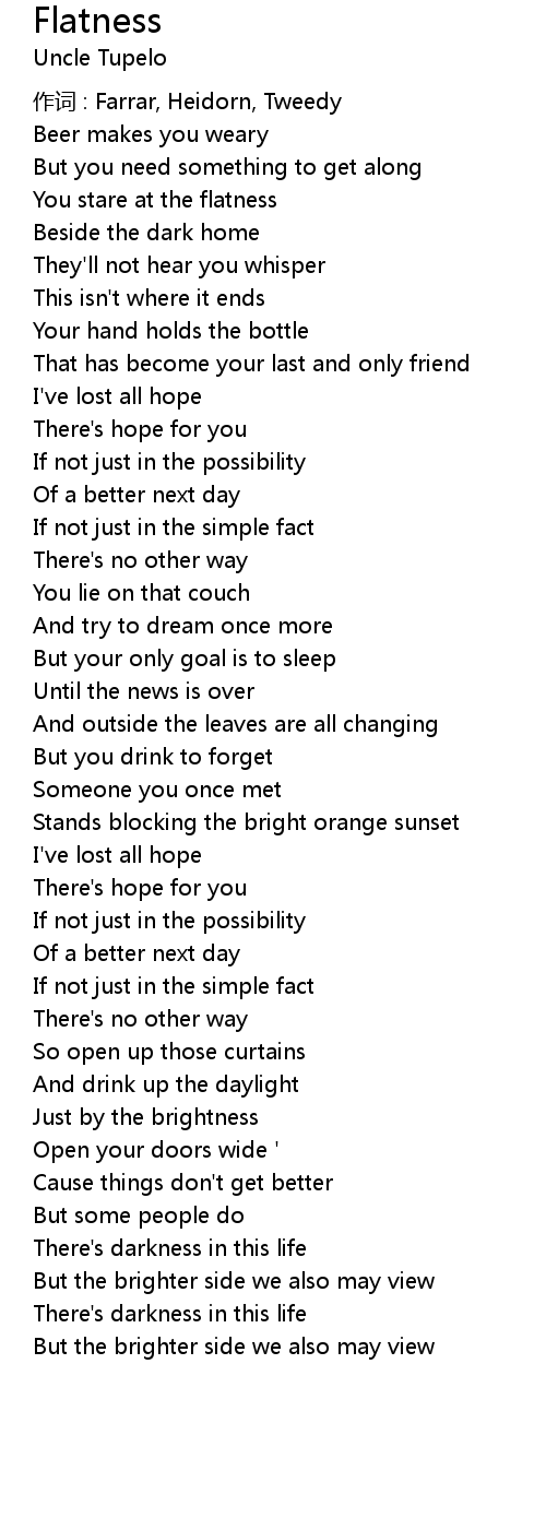 | 作词 : Farrar, Heidorn, Tweedy | |