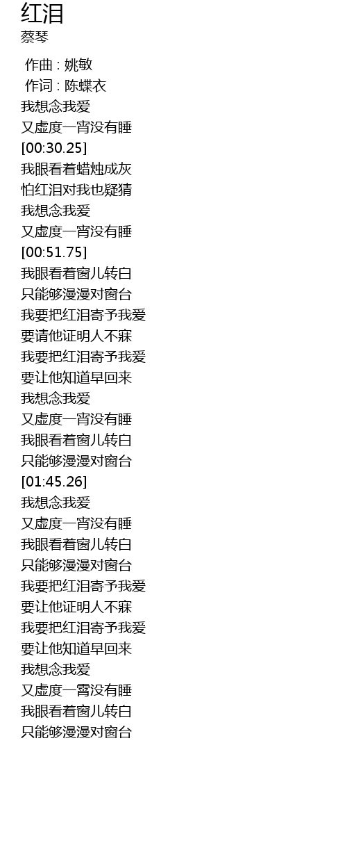 | [01:13.11] | 我要把红泪寄予我爱 |