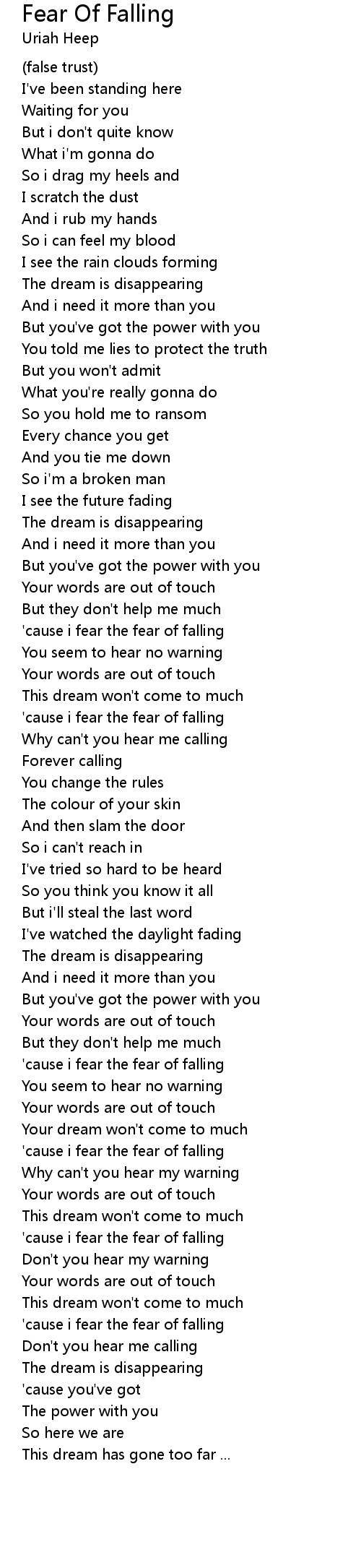 'cause i fear the fear of falling |