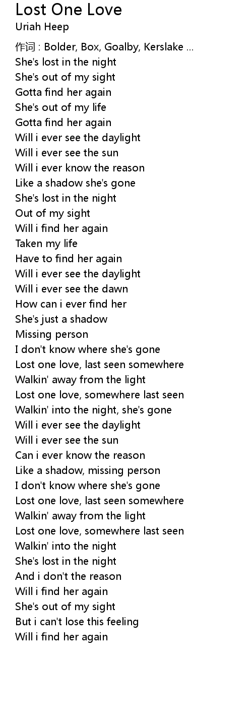 | Lost one love, last seen somewhere | |