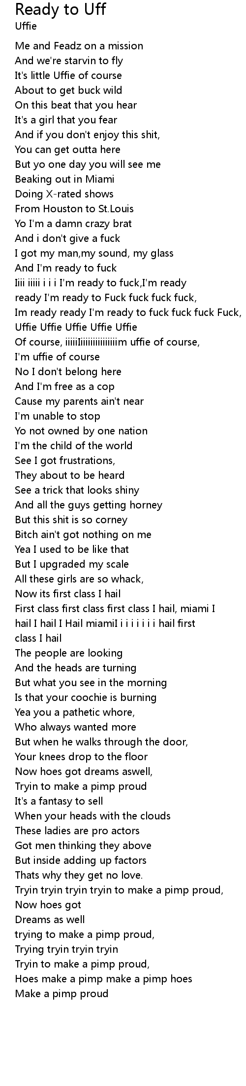 Im ready ready I'm ready to fuck fuck fuck Fuck, |