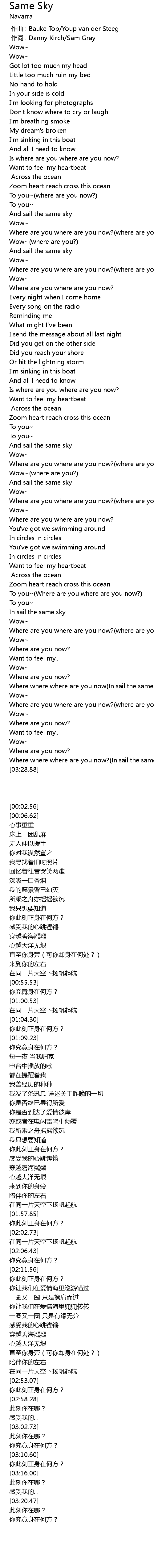 | [03:23.61] | Where where where are you now? In sail the same sky |