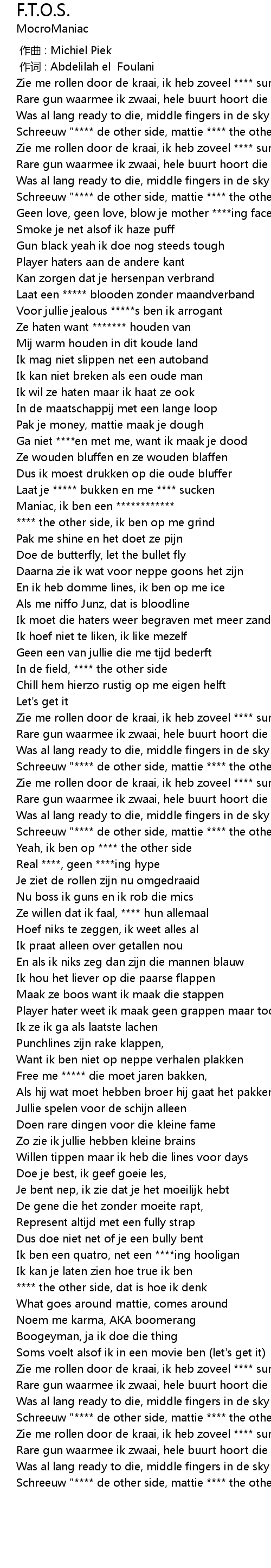 | [01:15.19] | Maniac, ik ben een ************ |