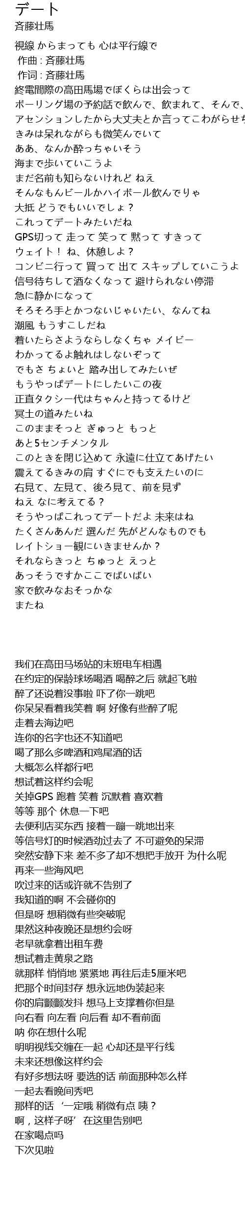 | [00:01.000] | 作词 : 斉藤壮馬 |