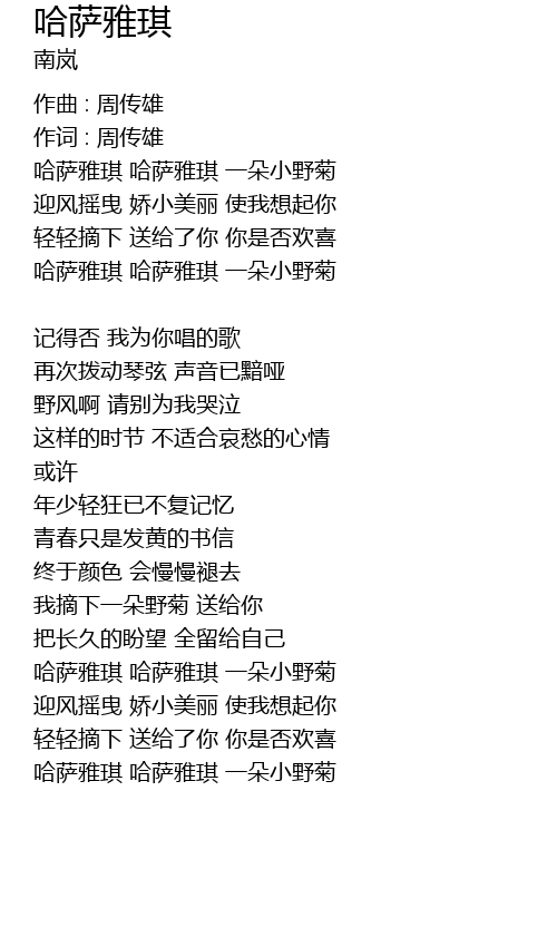 | 哈萨雅琪 哈萨雅琪 一朵小野菊 |