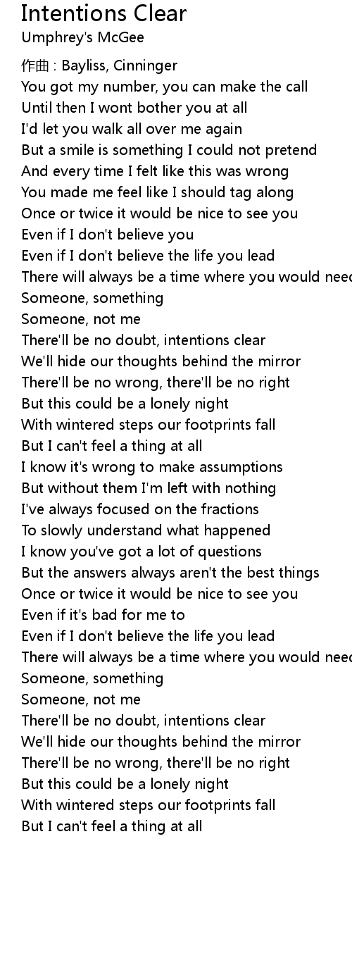 | Song | Intentions Clear |