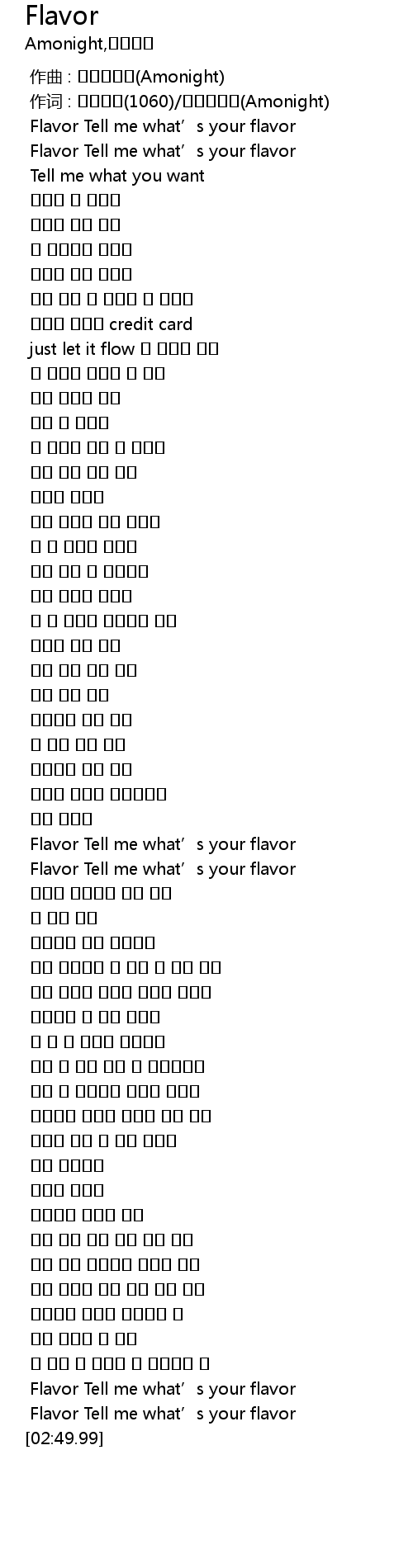 | [02:28.32] | Flavor Tell me what' s your flavor |