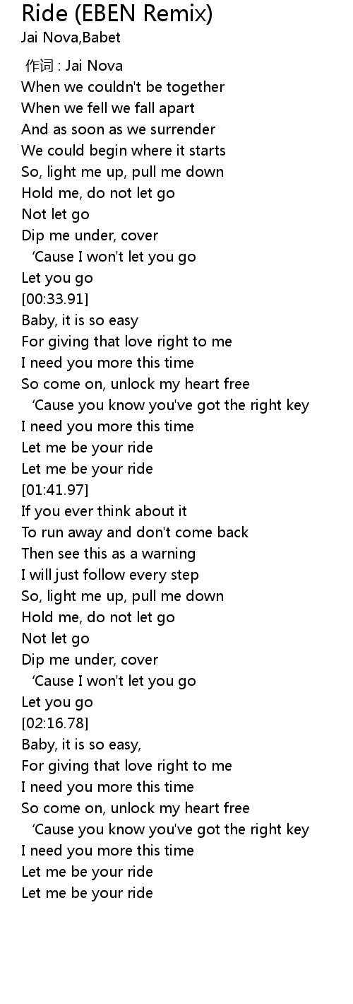 | [02:28.94] | ‘Cause you know you've got the right key |
