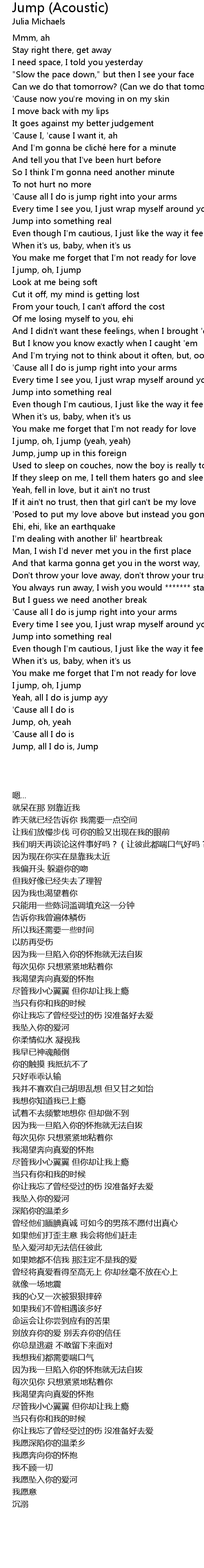 | [00:58.64] | I jump, oh, I jump |
