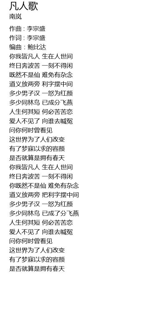 | nǐ wǒ jiē fán rén shēng zài rén shì jiān | |