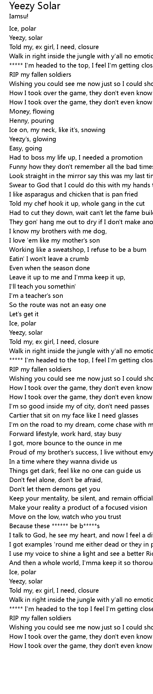 | [00:23.58] | Ice on, my neck, like it's, snowing |