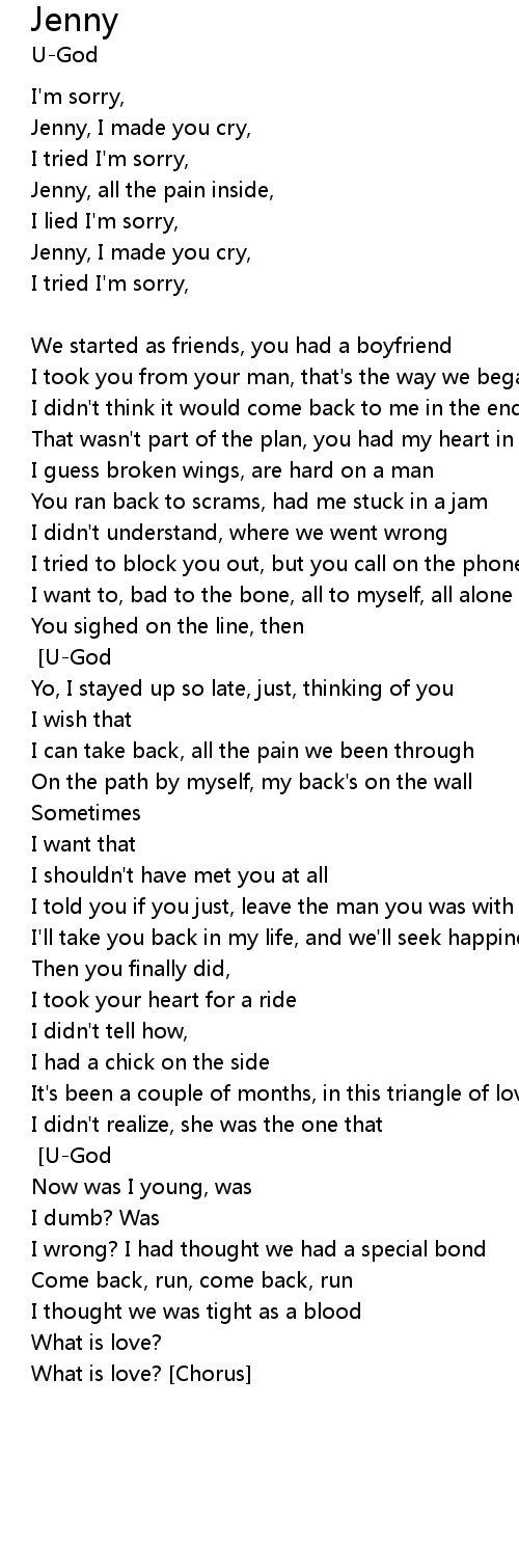 Jenny, for all the pain inside... [U-God] |