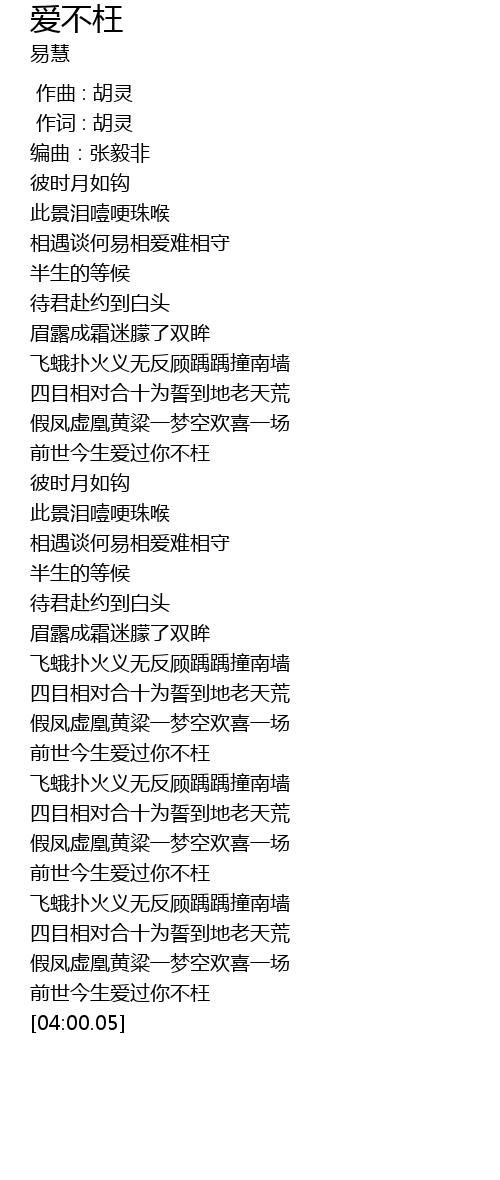 | [03:06.98] | 飞蛾扑火义无反顾踽踽撞南墙 |