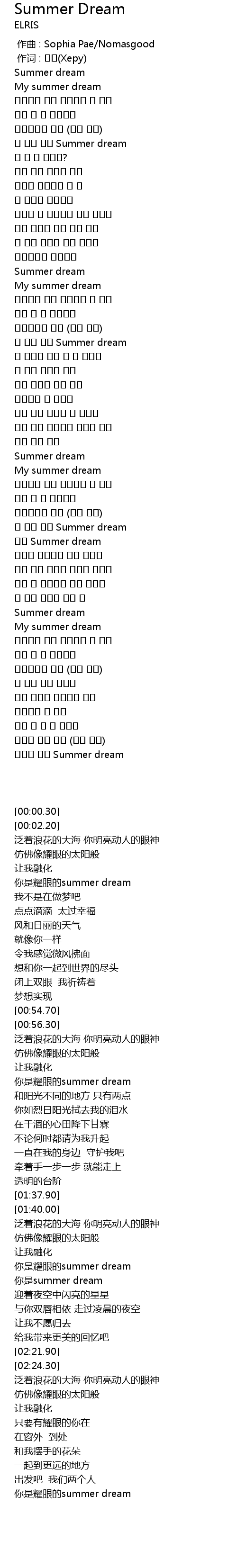 | [01:53.90] | 눈 부신 너는 Summer dream |