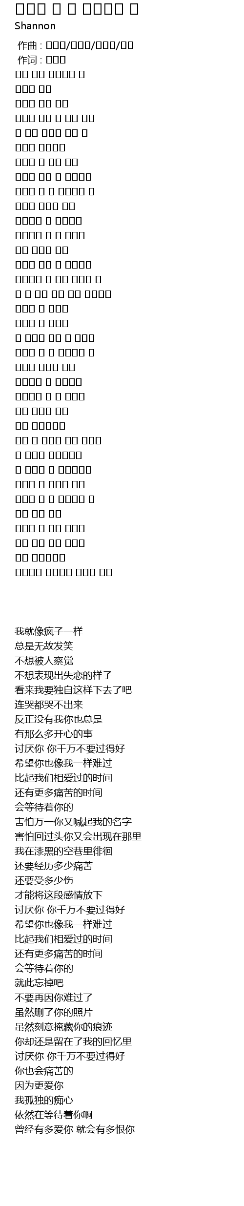 作曲 : 김태성/주찬양/김용신/샤넌 |