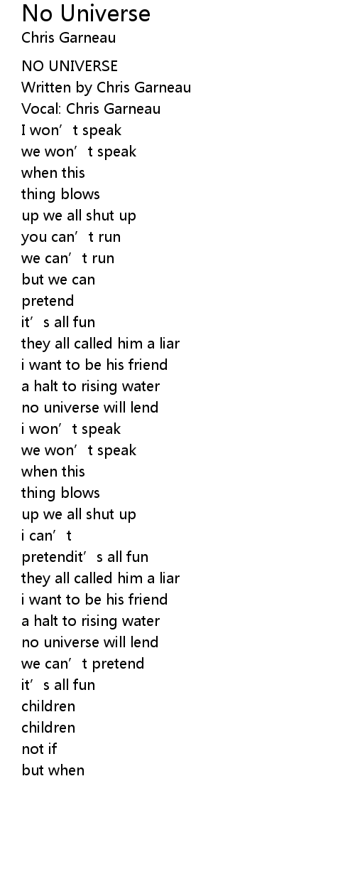 | Song | No Universe |