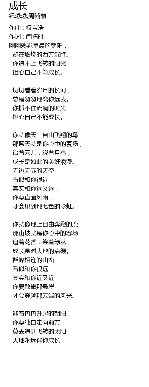 | tiān dì yǒng yuǎn bàn nǐ chéng zhǎng |