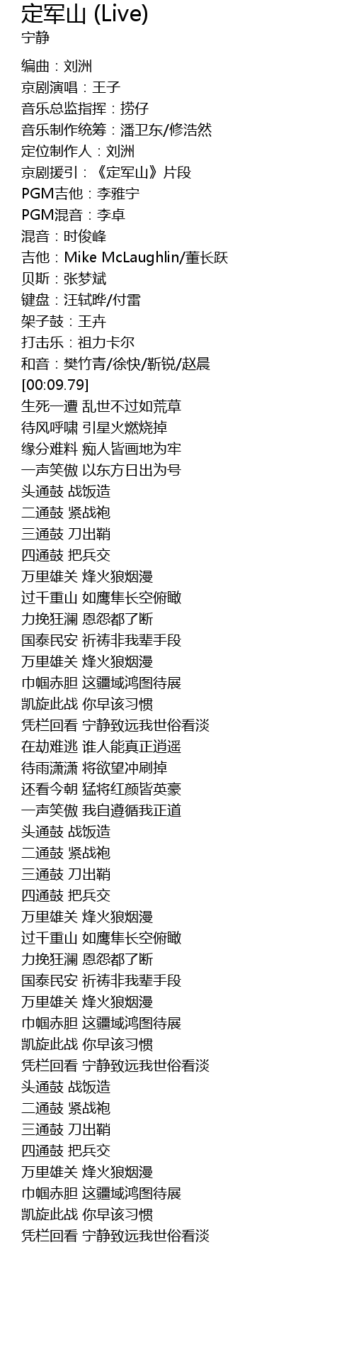 | [00:06.02] | 吉他:Mike McLaughlin/董长跃 |