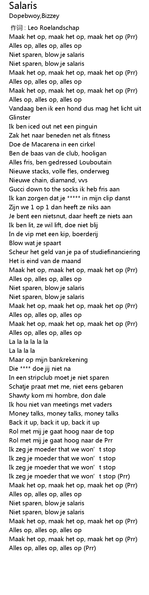 | [02:37.87] | Alles op, alles op, alles op Prr |