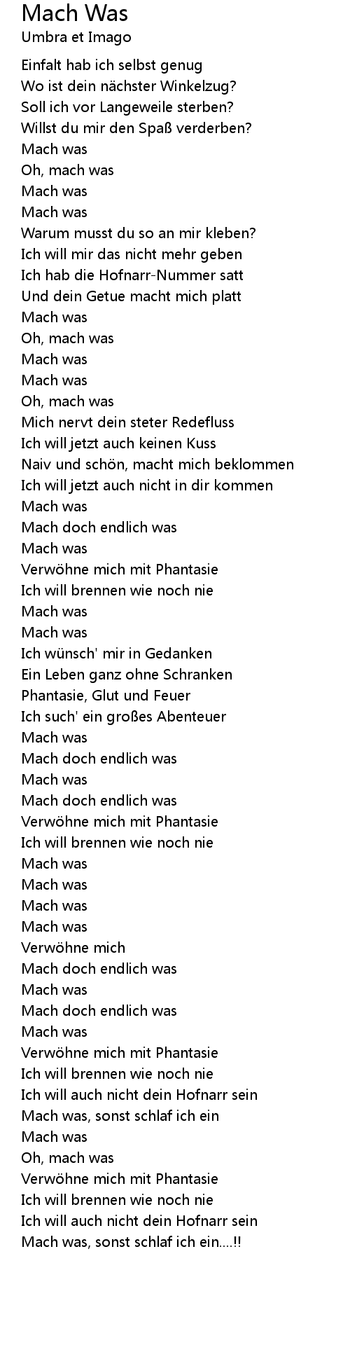 | Song | Mach Was |