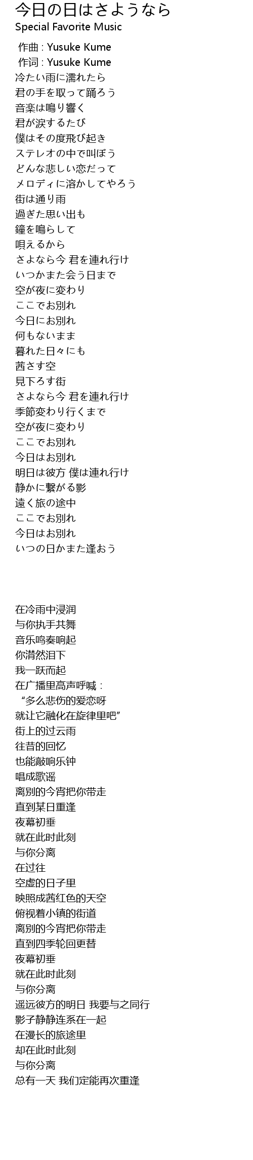 | [00:01.000] | zuò cí : Yusuke Kume |