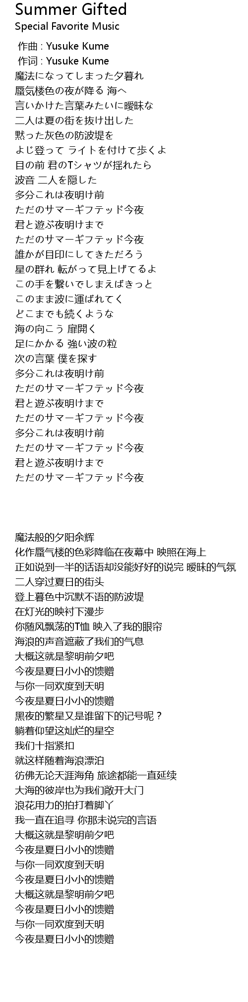| [00:01.000] | 作词 : Yusuke Kume |