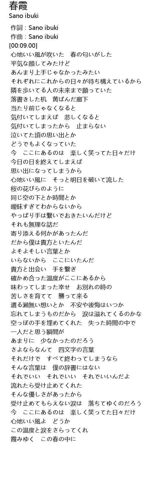 | [00:03.15] | 作詞:Sano ibuki |