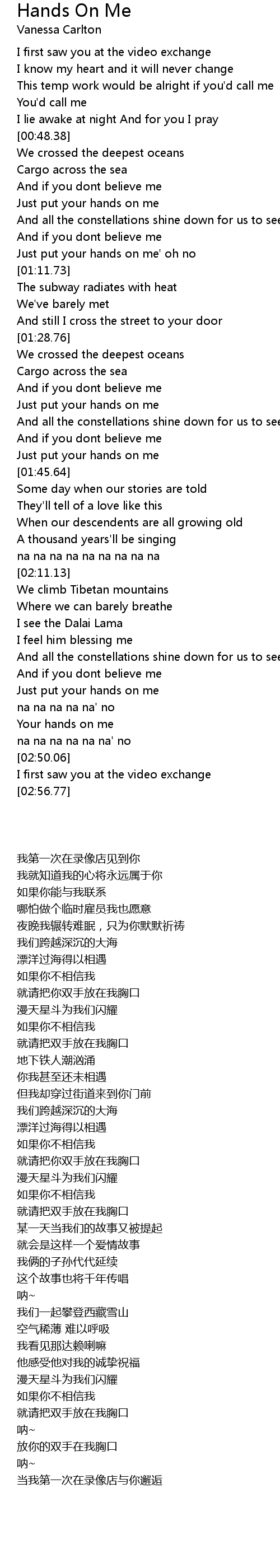 Just put your hands on me' oh no |