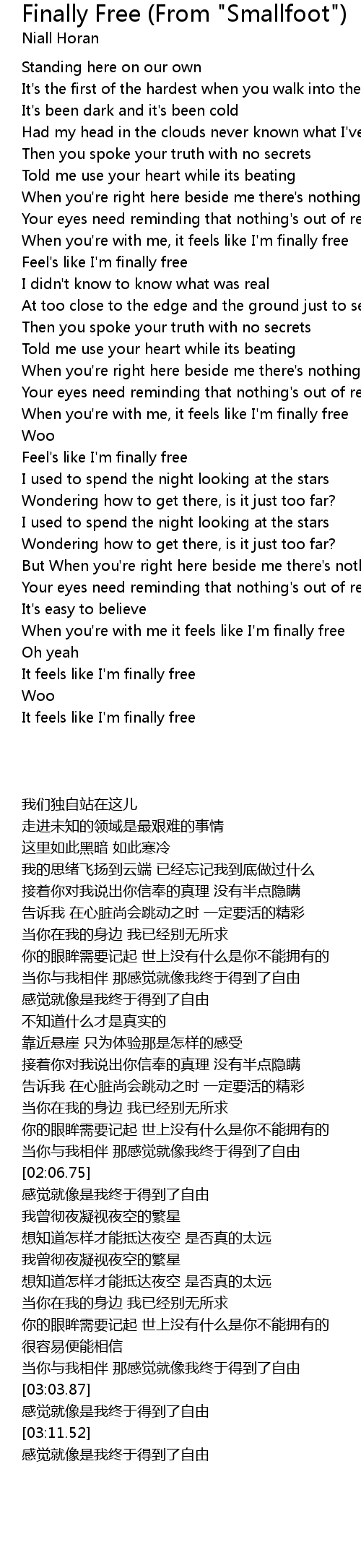 Feel's like I'm finally free |