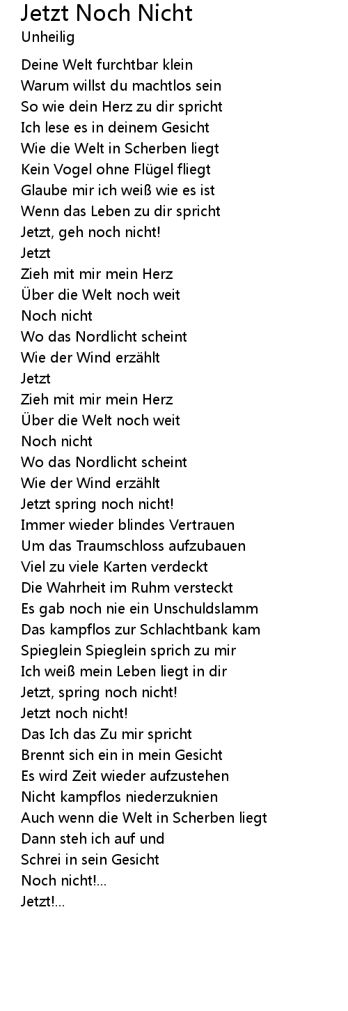 | Song | Jetzt Noch Nicht |