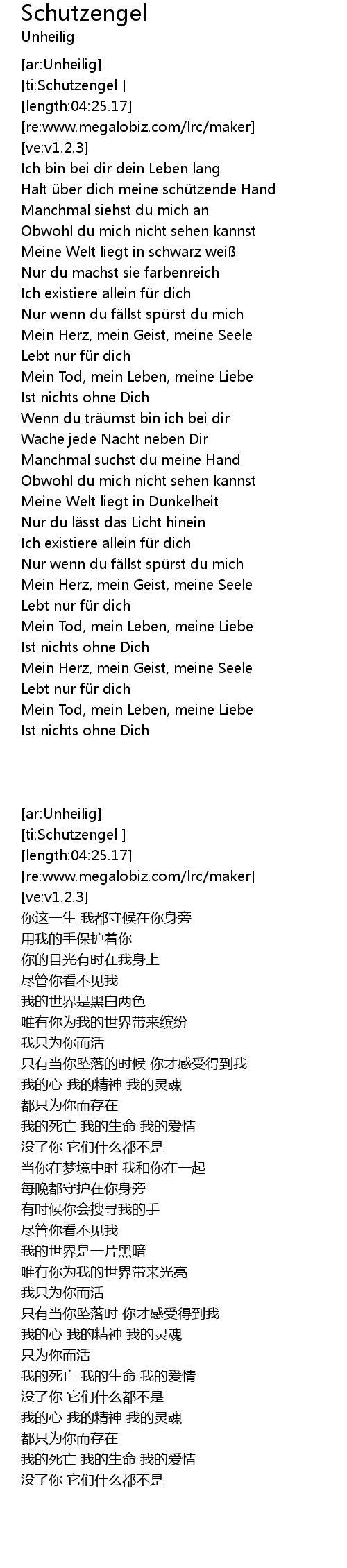 | [00:19.93] | Ich bin bei dir dein Leben lang |