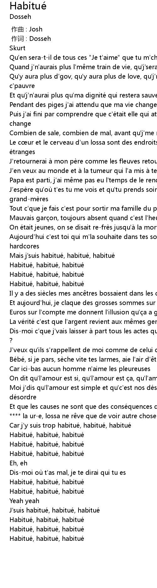 | [02:45.37] | J' suis habitué, habitué, habitué |