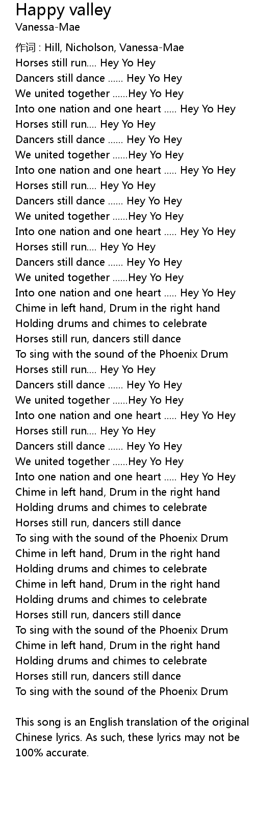 | Song | Happy valley |