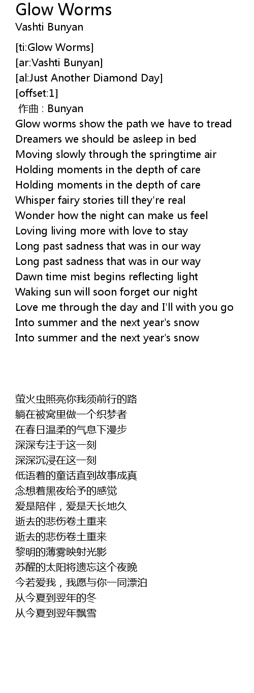 | [00:09.93] | Glow worms show the path we have to tread |