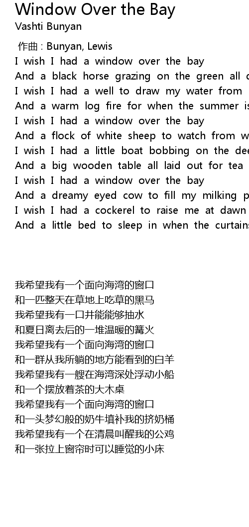 | [00:35.45] | I wish I had a window over the bay |