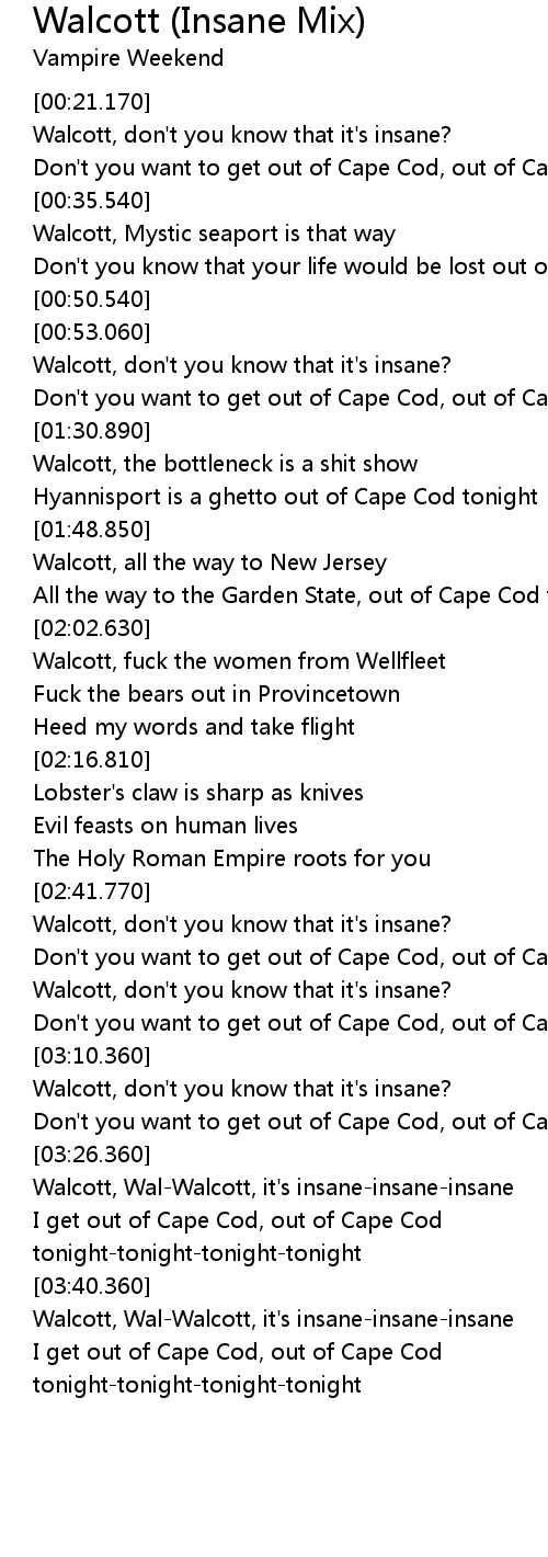 I get out of Cape Cod, out of Cape Cod tonight-tonight-tonight-tonight |