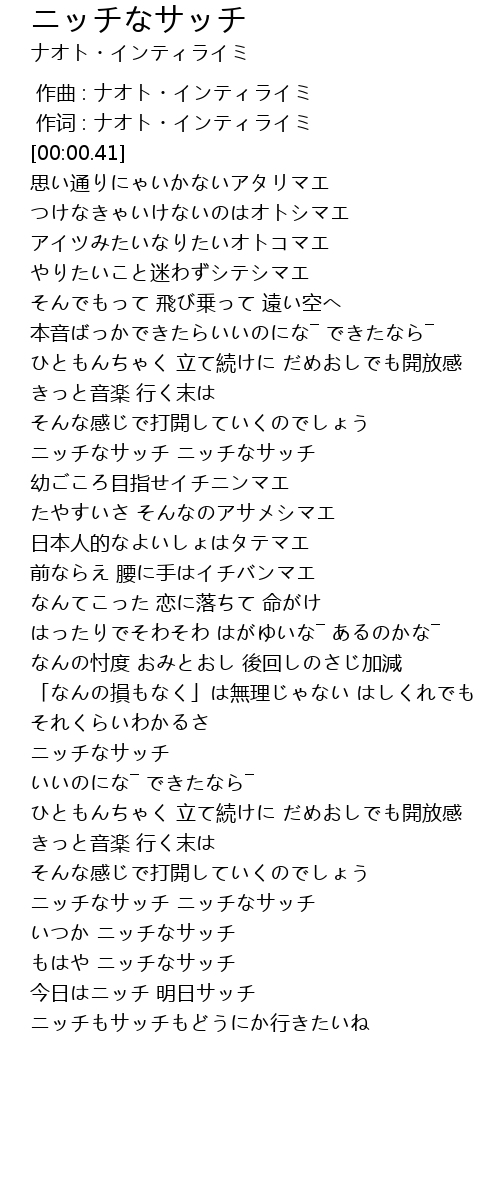 | [01:04.38] | ニッチなサッチ ニッチなサッチ |