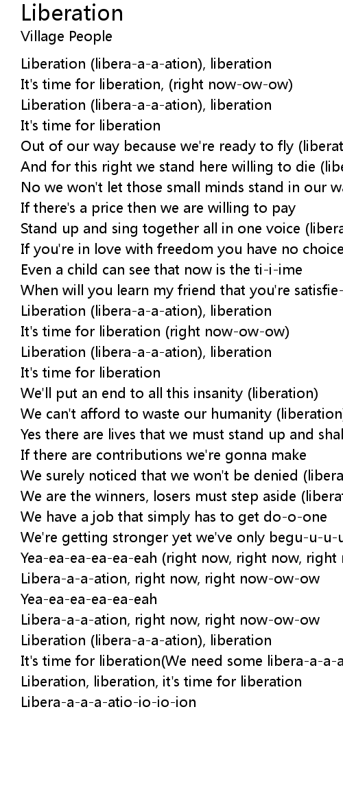 Stand up and sing together all in one voice (liberatio-io-ion) |