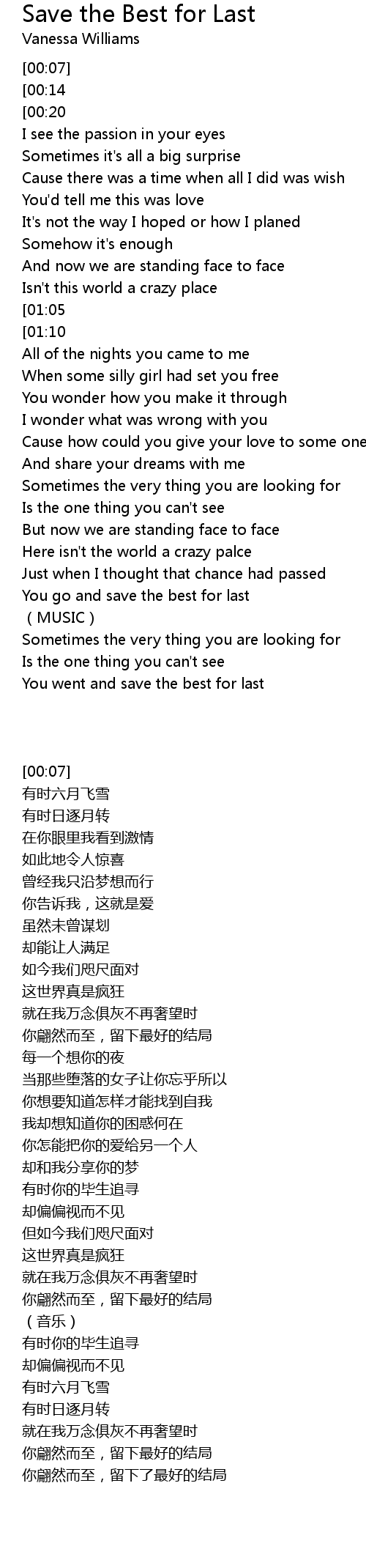 | Song | Save the Best for Last |