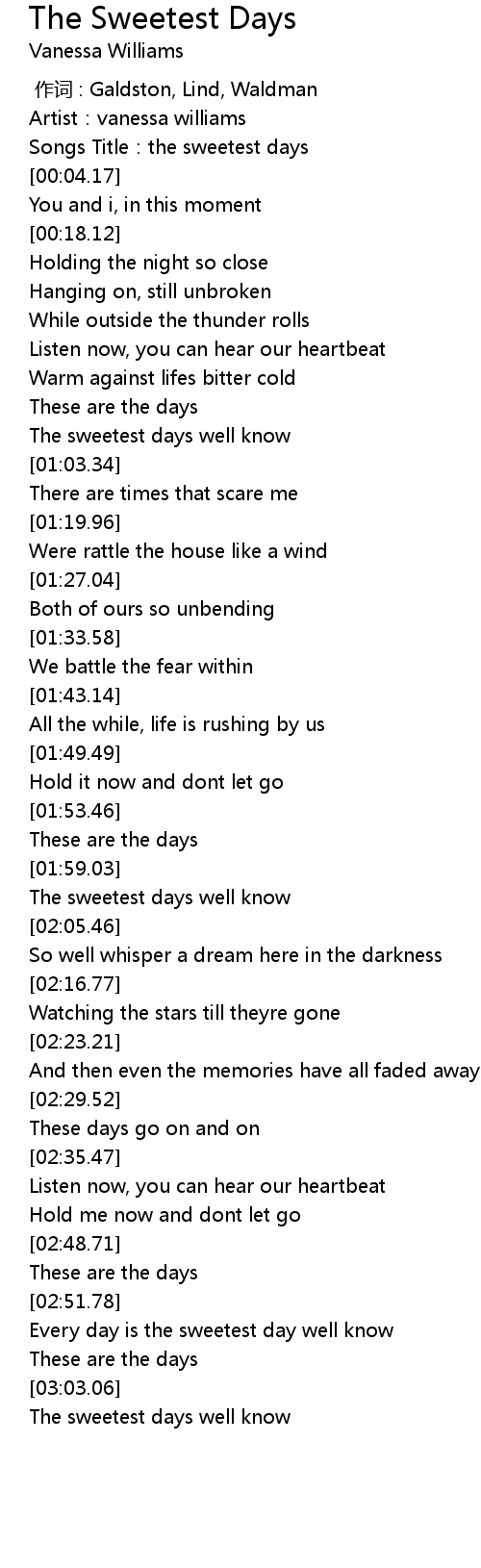 | [00:02.54] | Songs Title: the sweetest days |