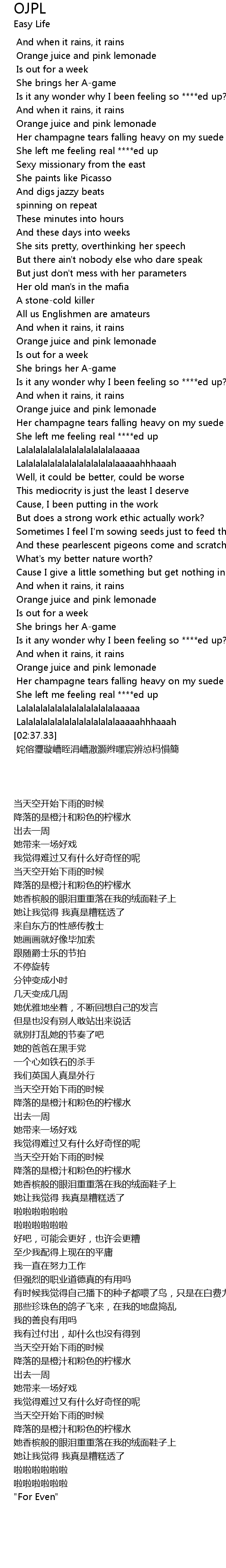 | [00:41.42] | She sits pretty, overthinking her speech |